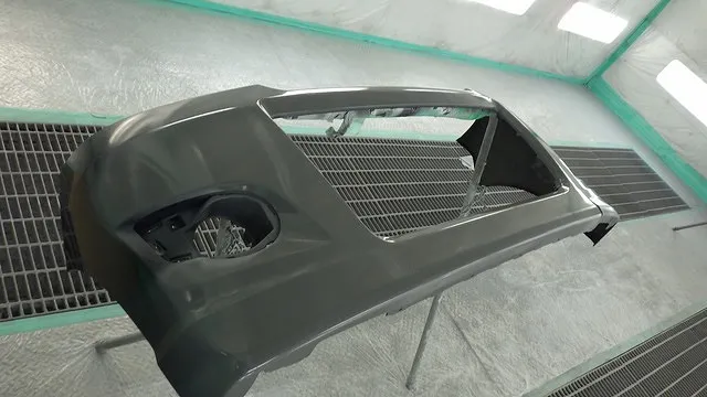 当店バンパー修理はボディから一旦外して作業します。