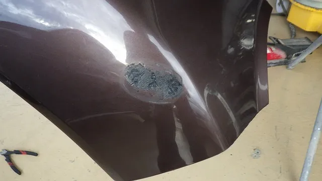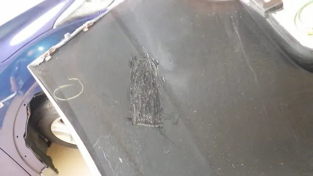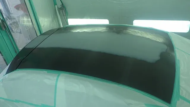 日産マーチのフロントバンパー穴埋めと天井の再塗装 泉佐野市