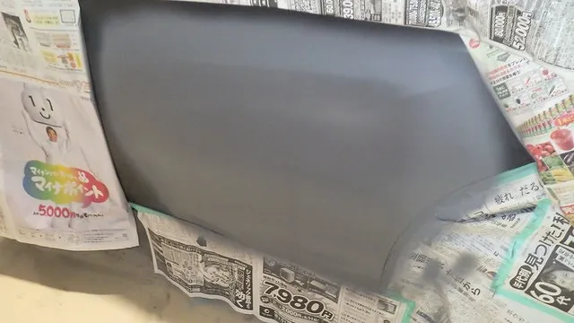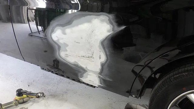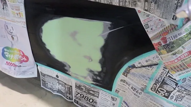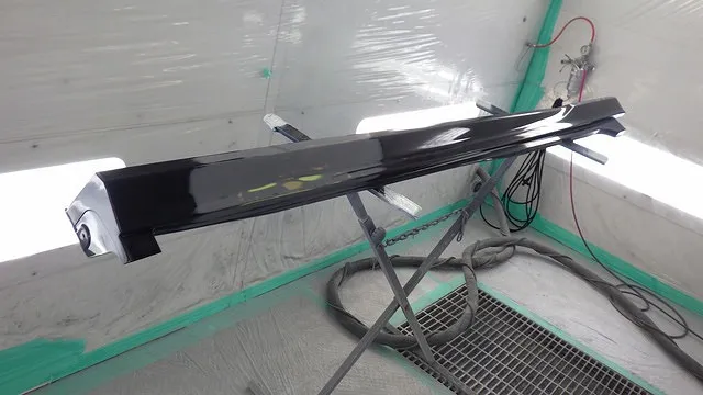 リアバンパーとサイドスポイラーにも傷がありますので削らせていただきペイントさせていただきます。