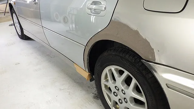 ベンツ 右リアドア 右クォーター 鈑金 塗装 修理 泉南市から