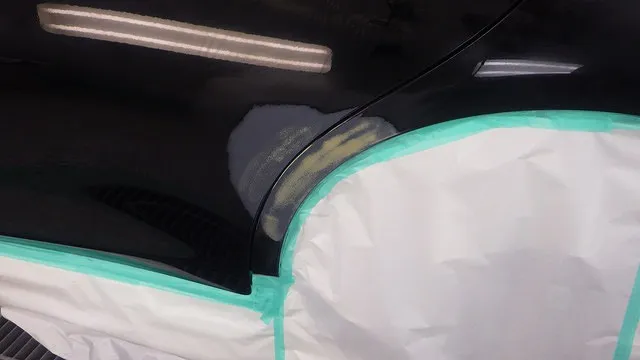 BMW ミニクーパー リアゲート 鈑金 塗装 クリア剥げ 岸和田