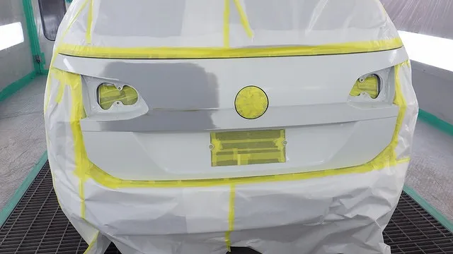 BMW ミニクーパー リアゲート 鈑金 塗装 クリア剥げ 岸和田