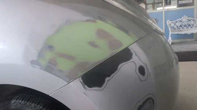 板金塗装 ビスタ 左クオーターパネル 左リアドア事例 泉佐野市カーサービスシンワより