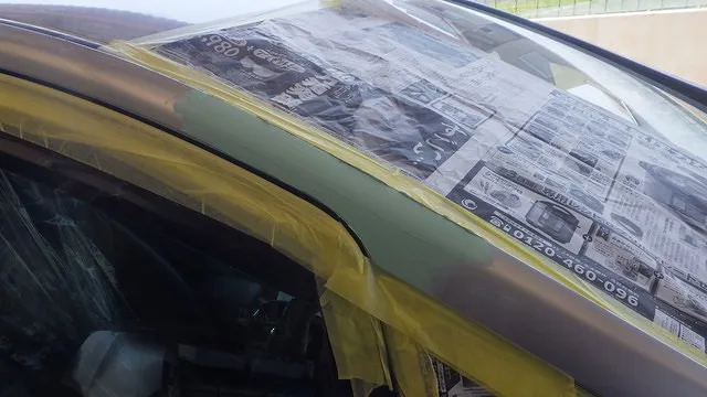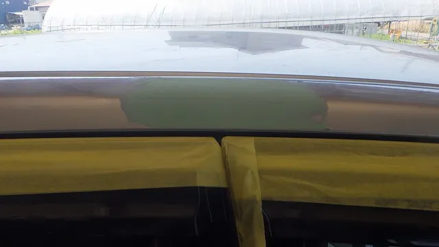 日産マーチのフロントバンパー穴埋めと天井の再塗装 泉佐野市