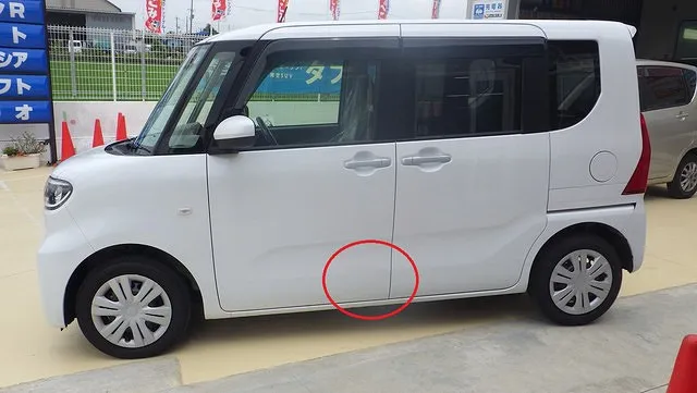 ダイハツ ウェイク 左ロッカーパネル ブロックに擦った キズ ヘコミ 鈑金 塗装 泉佐野