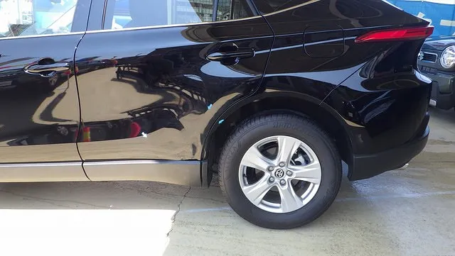 泉佐野市 トヨタ ハリアー 左後ろ周り リアドア リアクォーター 鈑金塗装 修理 キズ ヘコミ 和泉 岸和田 貝塚 熊取 泉佐野 泉南 カーサービスシンワ カーサービス シンワ