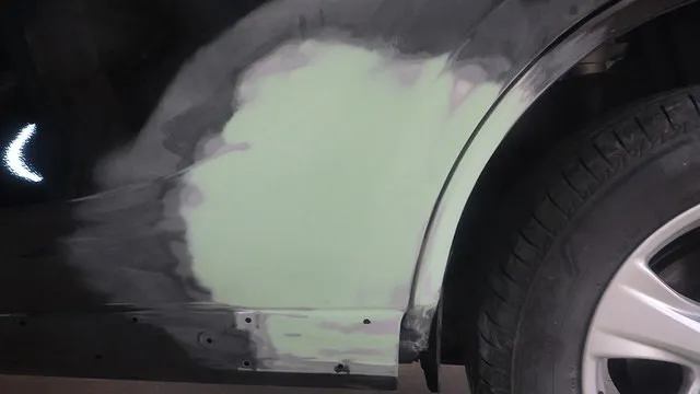 板金塗装 ビスタ 左クオーターパネル 左リアドア事例 泉佐野市カーサービスシンワより
