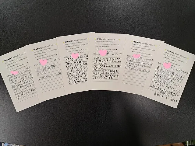 心のこもったお手紙本当に励みになります♪これからもみなさまに喜んでいただけるように精進していきたいと思います!!ありがとうございました!!