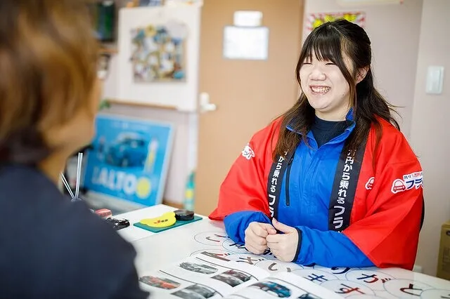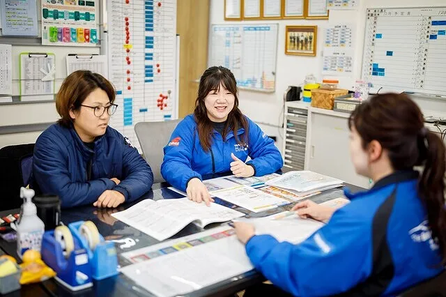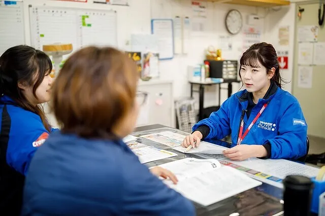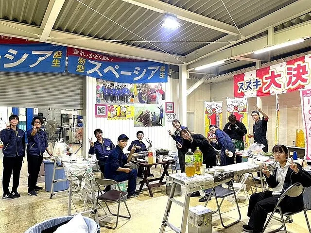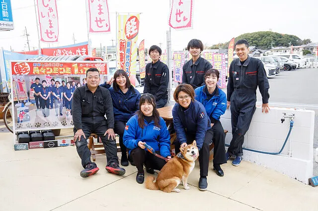 当店では、お客様に 安心して お車を預けることが できるように日ごろから ロープレを積んでお客様CS向上を目指して 取り組んでいます みんなが笑顔になれるお店作りに取り組んでいます。社員の笑顔がお客様の笑顔につながると信じています。