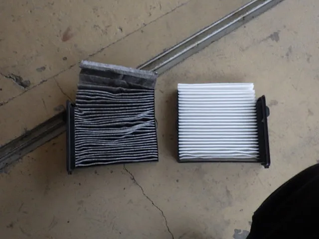 「お車のエアコンが臭い原因の一つにエアコンフィルターの汚れがあります」