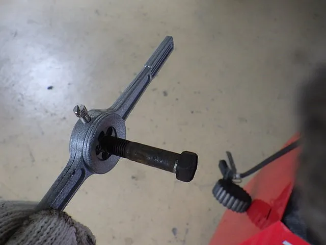 このままだと組付けにも影響が出るのでねじ山を一本ずつ切りなおします。